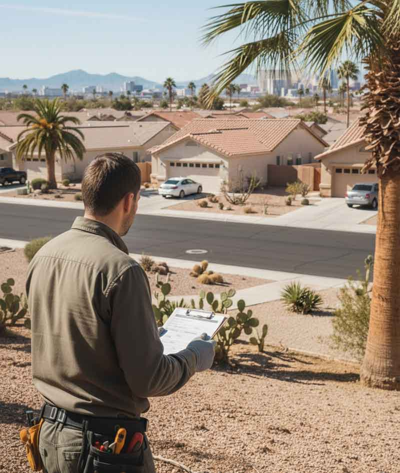 • Crown Thinning: Reducing the weight of the canopy to prevent “wind-sail” effect during Vegas windstorms.